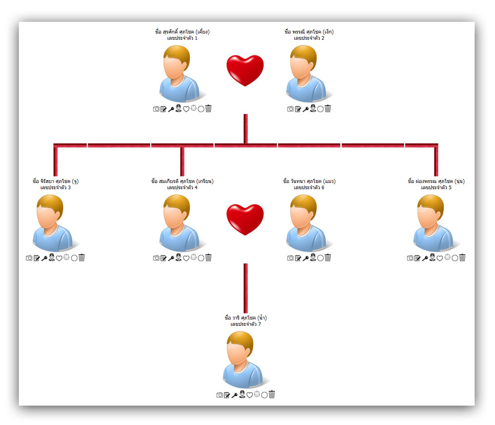 | 2) | สร้างโครงของผังครอบครัวเพื่อรองรับสมาชิกทุกคนในครอบครัว |